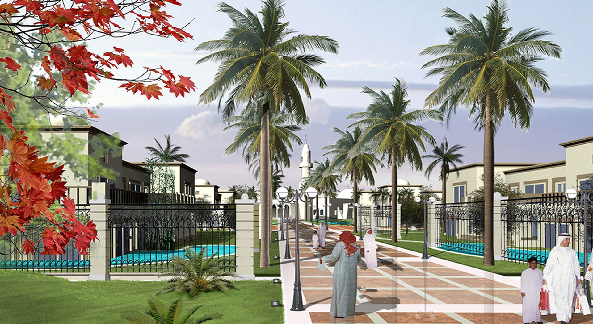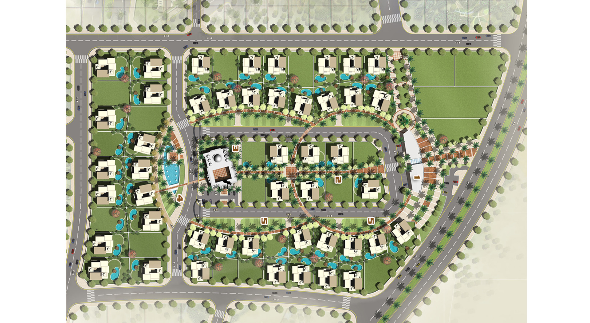 The Azizia Resort Consisting of residential villa units are designed around a main spine located in Khobar KSA. The master plan was characterized by a central pedestrian spine, starting at the main entrance and ending with the local mosque, integrated with soft landscape and lush vegetation. The villa units are clustered around the central spine, with a ring road and pedestrian pathways being closely linked together.