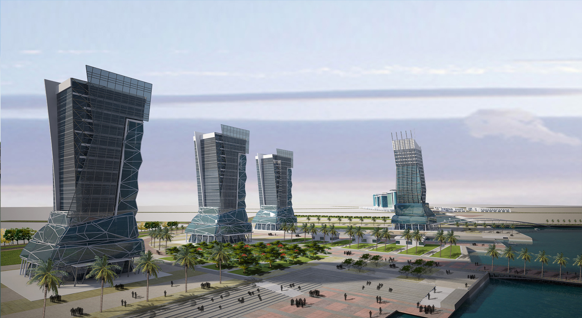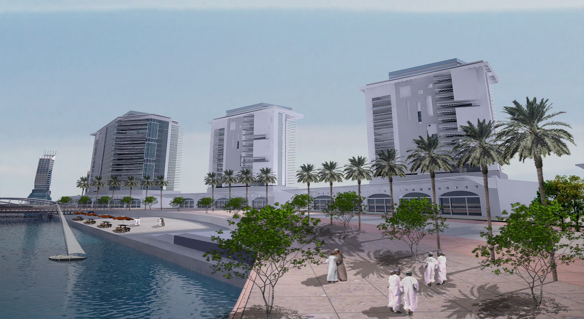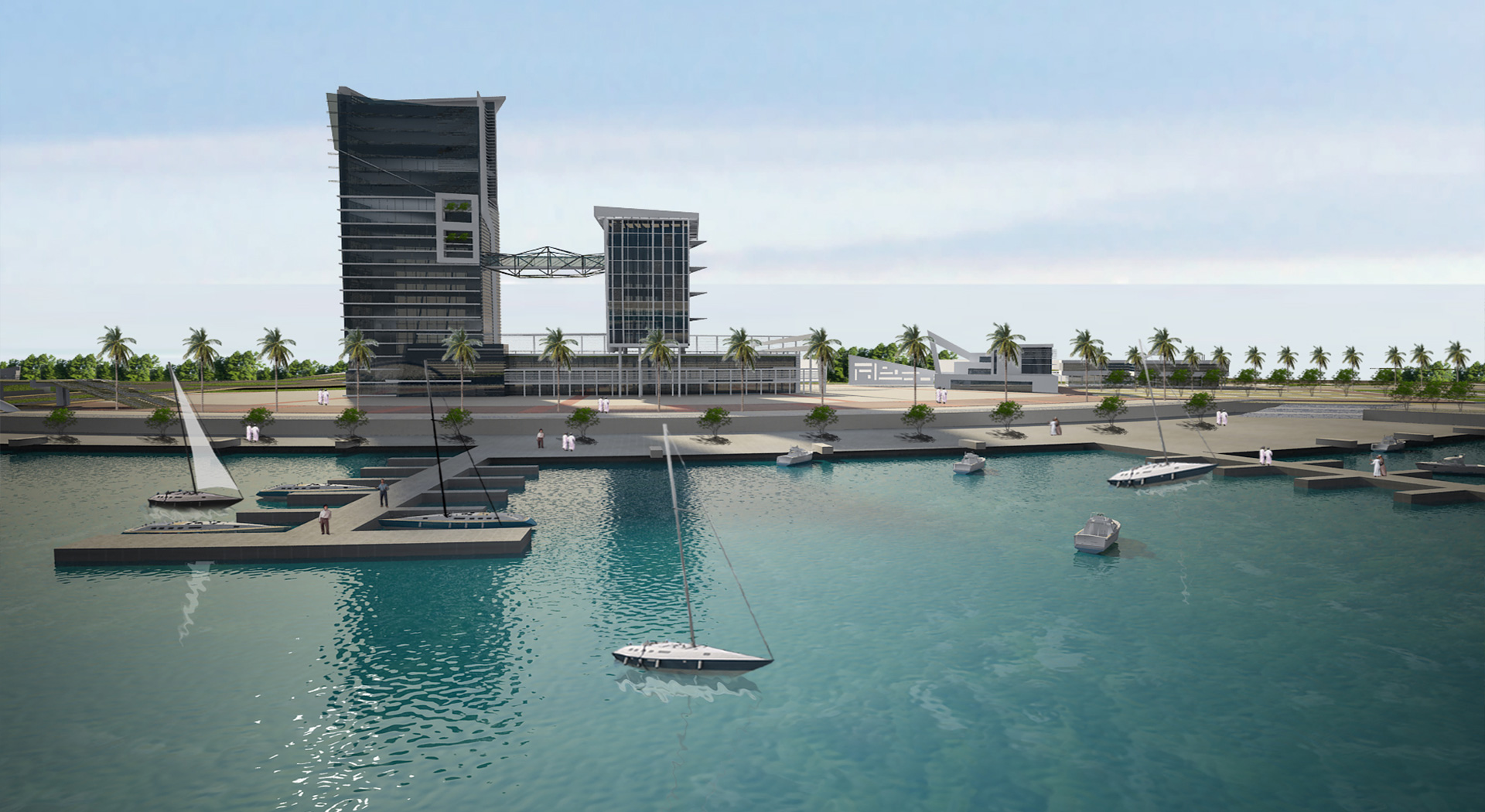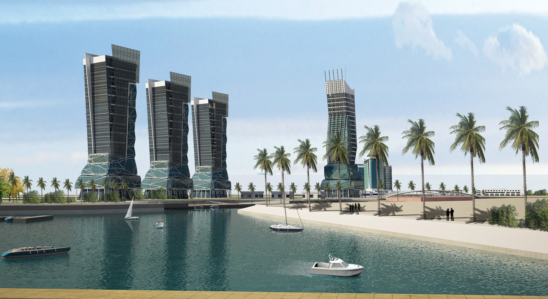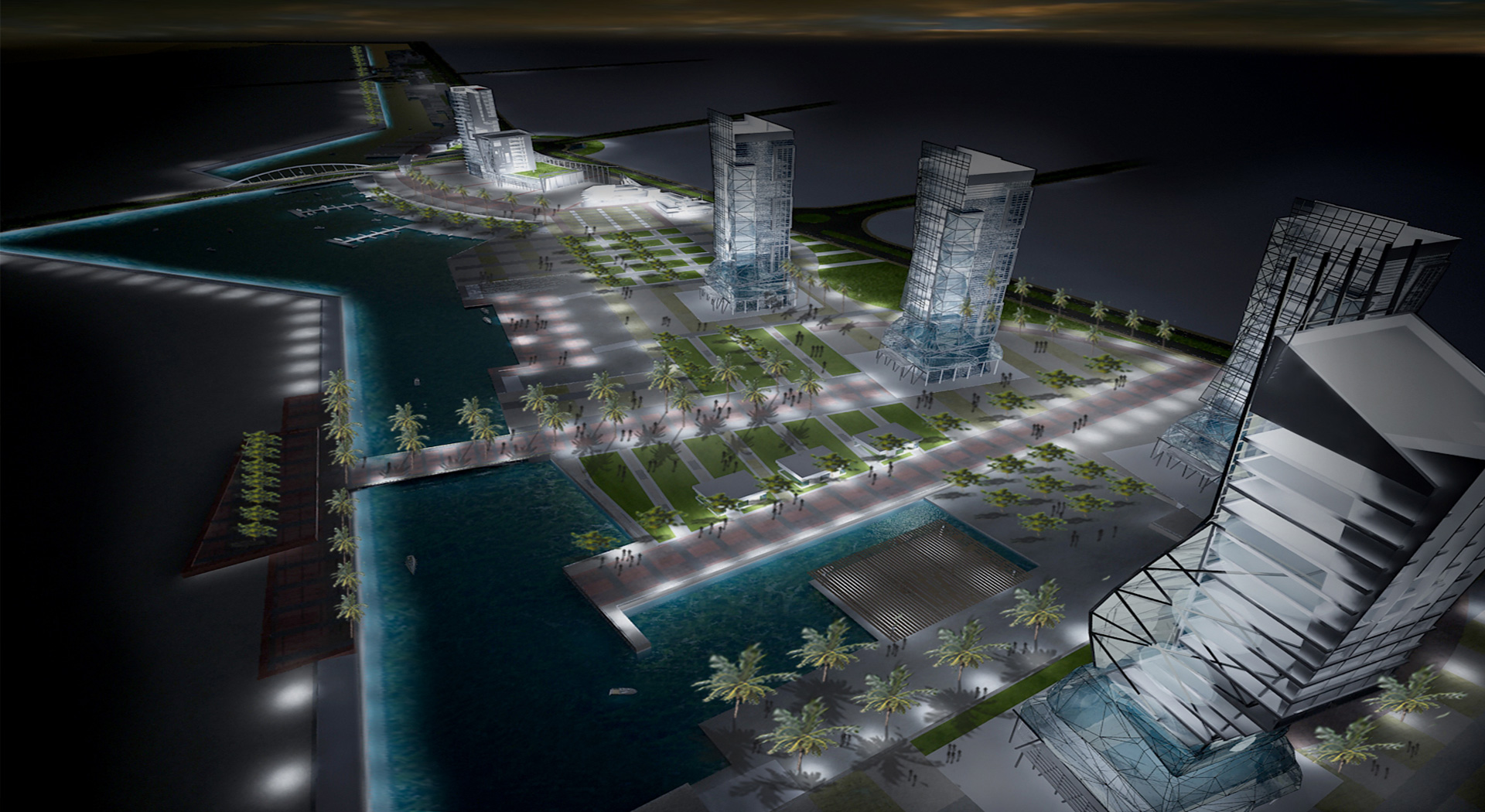 An Artificial Canal Passing through the Project's land was added in order to increase the land was added in order to increase the land value of the Aden Marina Canal and creating a water front promenade, which Consists of different levels, green spaces and piazzas. It also includes administrative towers, residential buildings, cafeterias, commercial spaces and a number of marinas and urban spaces located along the canal.