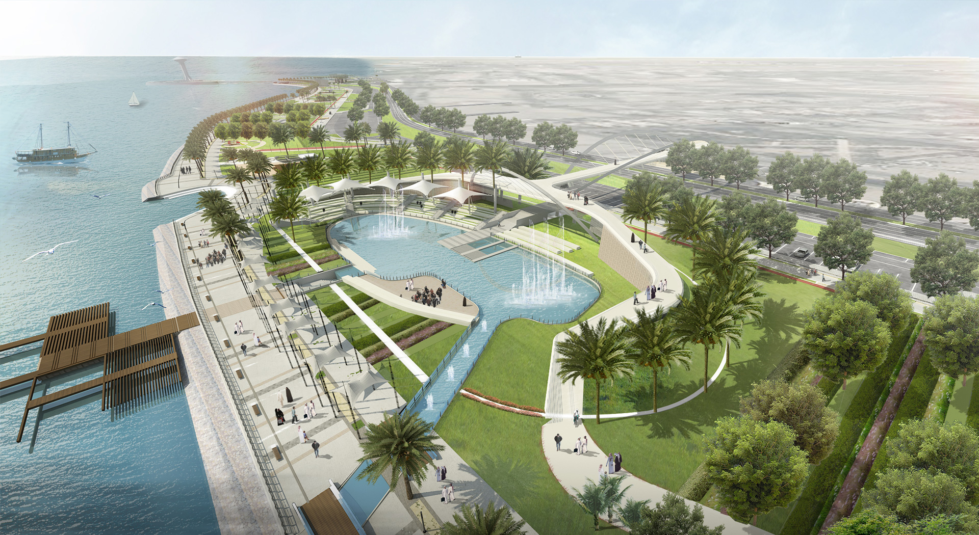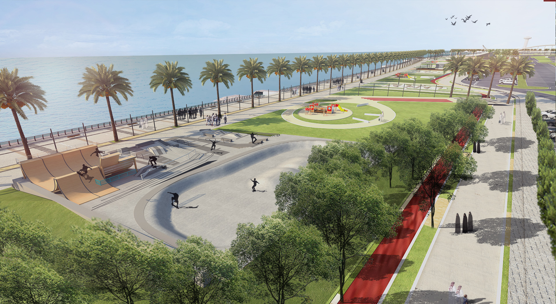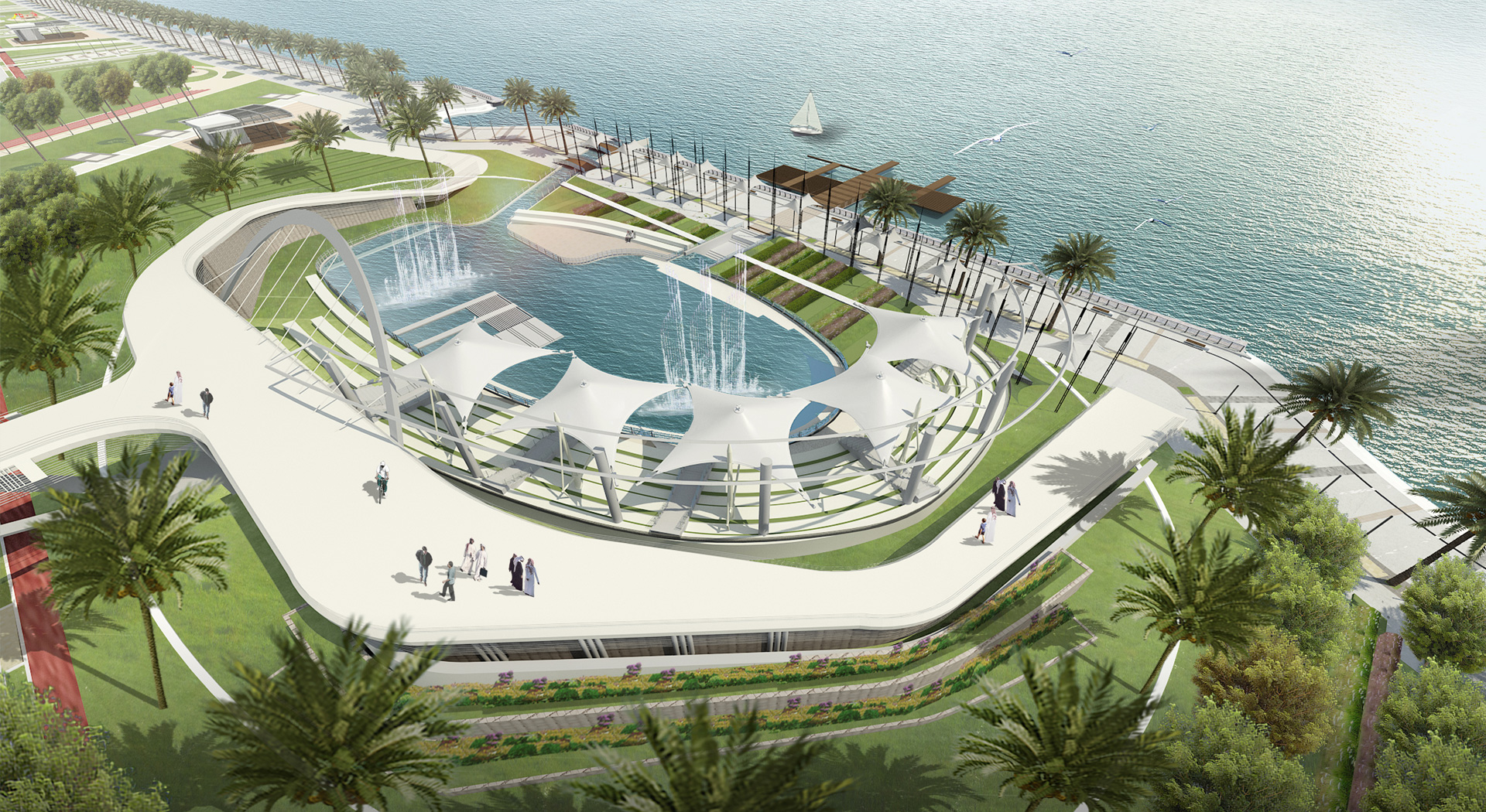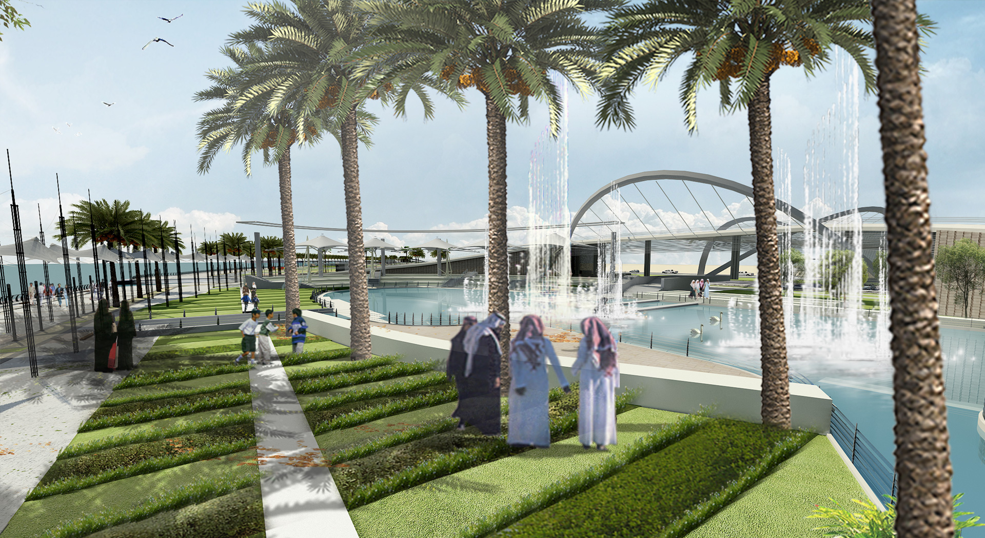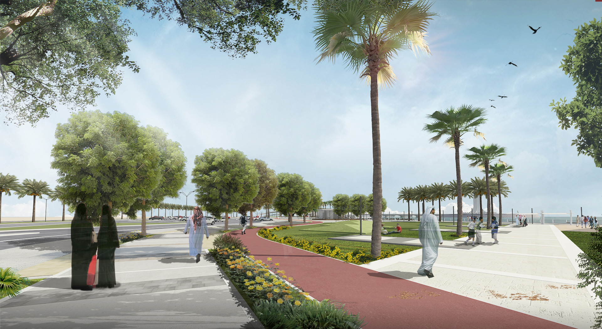 The Corniche Landscape Project is a major revitalizing urban project, located on the Al-Khobar waterfront. The Corniche will serve as a symbolic element of the city of Al-Khobar reigniting the public outdoor life activities along the sea coast. Spanning a distance of more than 70 km, The Corniche Project will act as a social Nexus and a cultural and touristic spot that a variety of activities from playgrounds to skating rings pathways and natural landscapes. Along with these outdoor activities a range of retail outlets, cafes and restaurants are located on the urban waterfront to accommodate visitors and passersby's. A strong integration is created between landscape and topographic elements and its sharp axial lines create a strong sense of direction and movement.